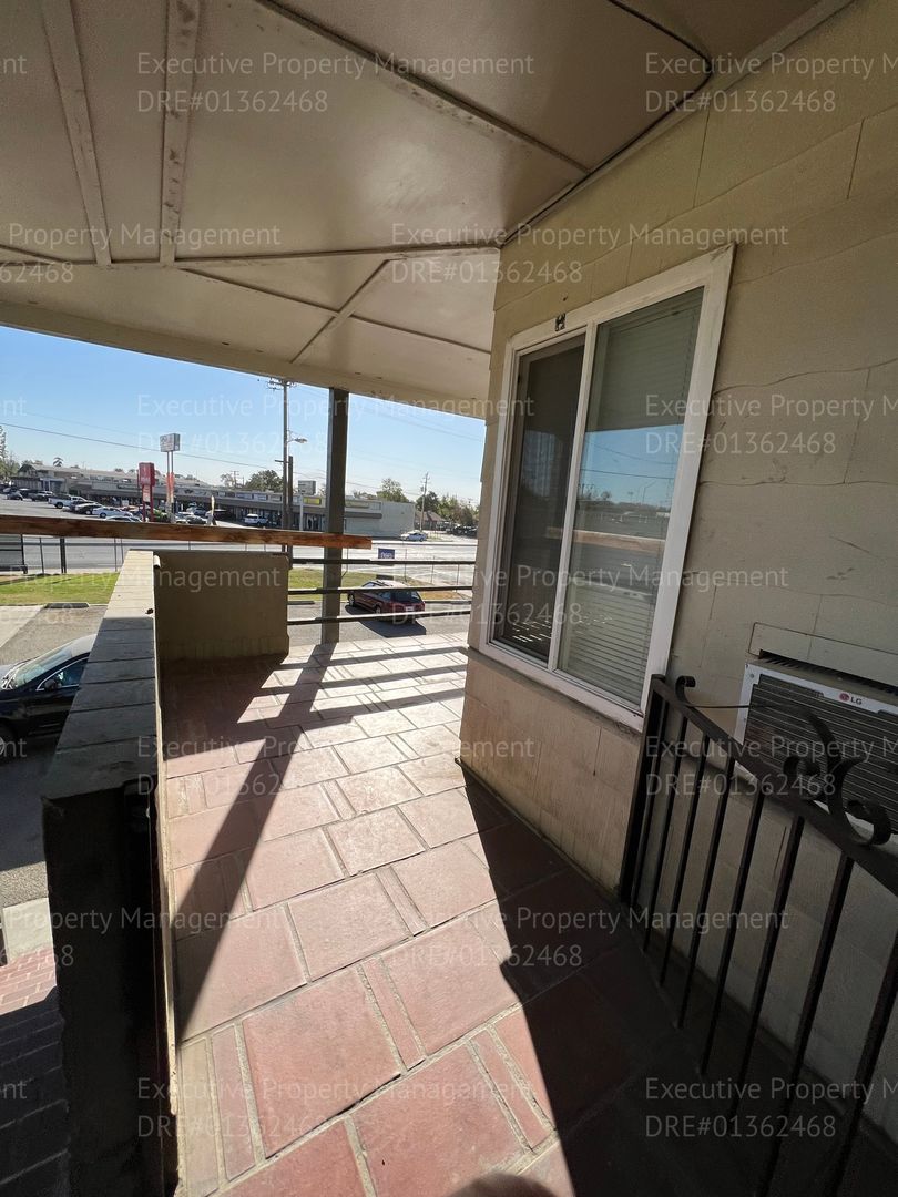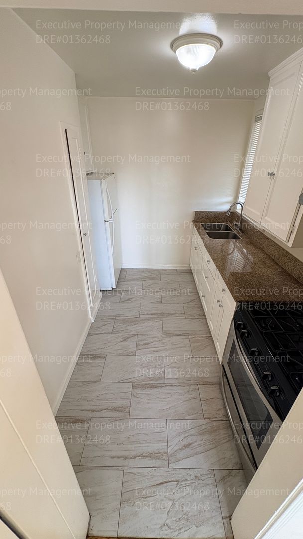 Located in Bakersfield, this upstairs studio offers a well-maintained living space with laminate flooring in the main area and tile in the kitchen and bathroom. The kitchen features a granite countertop, a gas range/oven and a refrigerator. The unit includes a security front door, off-street parking, and utilities for water, trash, and sewer are included. Conveniently situated near shopping centers for easy errands and dining options. DRE#01362468